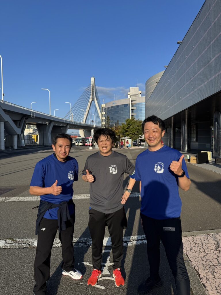 二日目の早朝には青森ベイブリッジを含む海沿いのコースを走るFun Runイベントが開催されました。道中は弘前大学の皆さんが声援を送ってくださり、美しい朝の海を眺めながらひんやりとした清々しい空気を吸い、とても気持ちよく走ることができました。