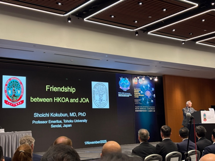 学会初日のOpening Ceremonyでは、国分正一先生の招待講演「Friendship between HKOA and JOA」を拝聴しました。国分先生は毎年のように香港を訪れているようで、長年築いてきた深い関係性や、HKOAとJOAの歴史を知ることができました。