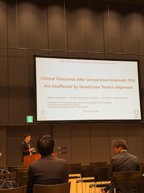 今後も膝グループからより多くの演題が採択されるよう、グループ一同、研鑽を積んでまいります。引き続きご指導・ご鞭撻のほど、どうぞよろしくお願い申し上げます。