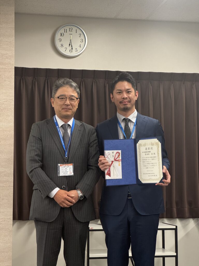 表彰式では昨年の若手優秀演題賞受賞の東海林諒先生が、前会長の沼田徳生先生より表彰されました。